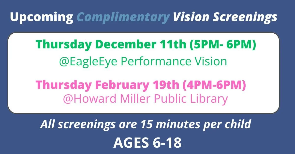 To schedule your complimentary functional vision screening, simply call our office at 616.848.7548 or sign up by clicking the schedule button below. Please click the correct schedule button based on location.